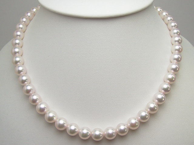| 8.5ミリ~9ミリのアコヤ真珠ネックレス&イヤリング(ピアス)セットです。 |